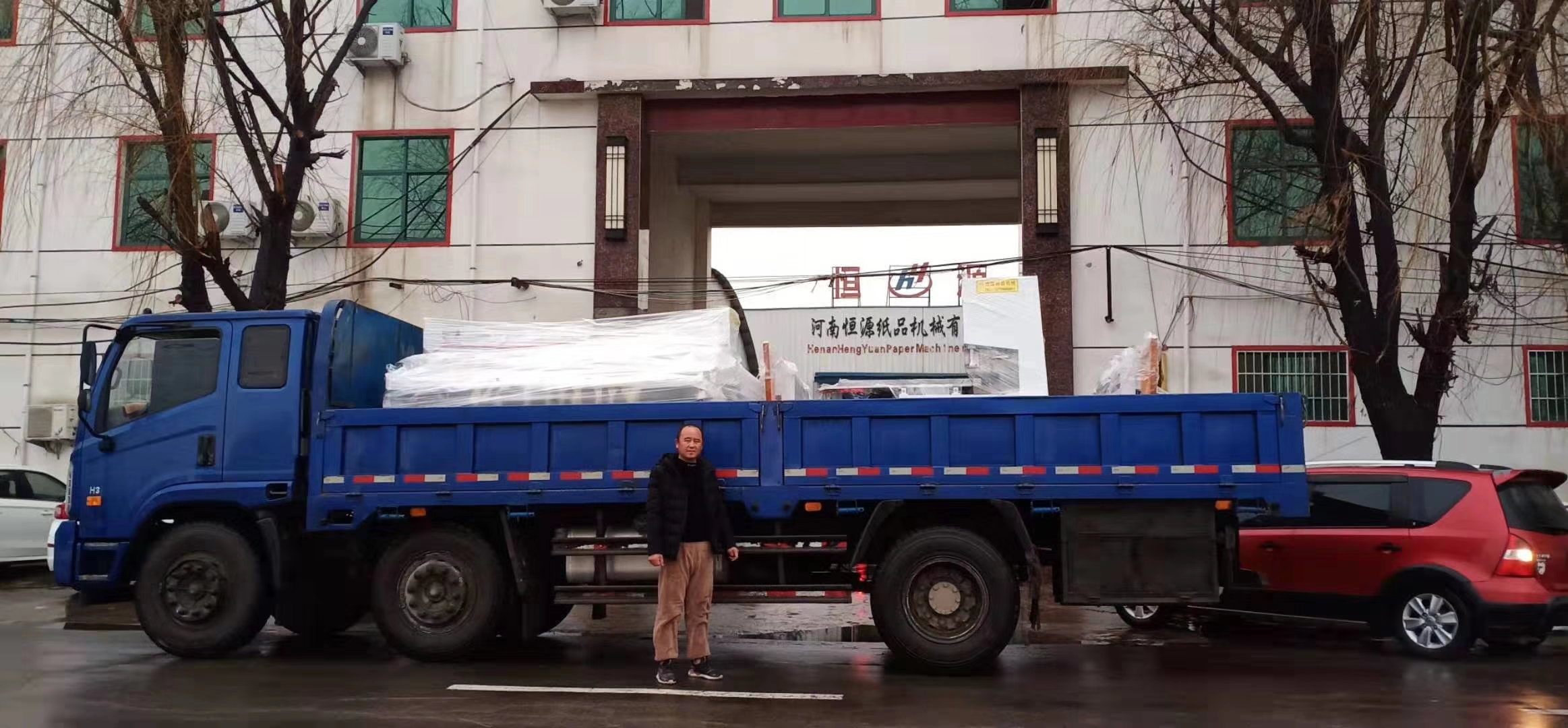 最近幾天雨雪不斷,一般情況下我們是不發(fā)貨的,但是客戶著急要設備,想要在年前就開業(yè),所以今天就算是下雨還是依然給客戶發(fā)了貨。今天發(fā)貨的是安徽淮北客戶陸先生的全自動衛(wèi)生紙復卷機。